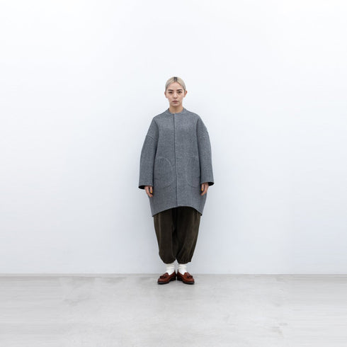 1/8のラムウールを表裏ツイルで織り中糸は2/60の綿糸を使用しています。