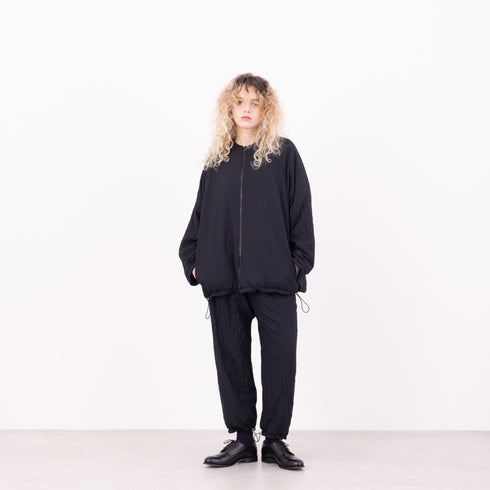スパンポリエステル糸で編んだ裏毛組織のカットソー生地と裏側にはポリエステルライトタフタを配して