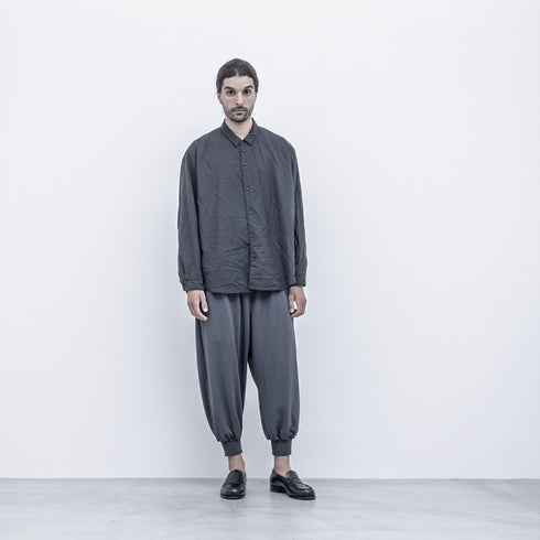 ポリエステルの製品染めは色やサイズ・ロットによって生地の皺感や質感が異なります。また個体差も大きく皺以外にも風合いも大きく異なる場合があります。これはポリエステルの製品染めの特徴ですのでご了承ください。この生地は特に荒めに織っているためサイズも個体差も大きくシワ感や風合いも個体差が大きく出ます。