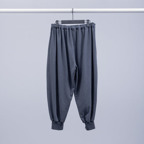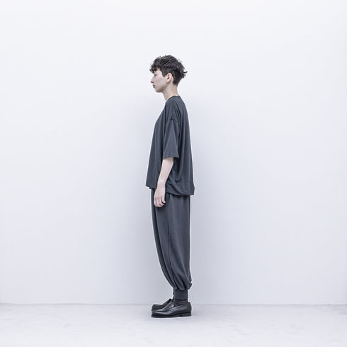 スパンポリエステル糸で編んだ裏毛組織のカットソー生地を製品後にポリエステル染めで染めています。